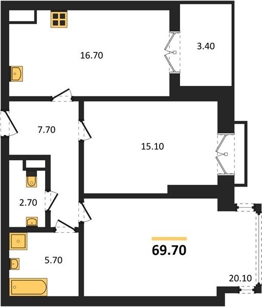 Используется гамма из 3 цветов: коричного, чёрного и светло-серого, что подчёркивает бизнес статус жилого комплекса.