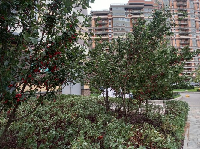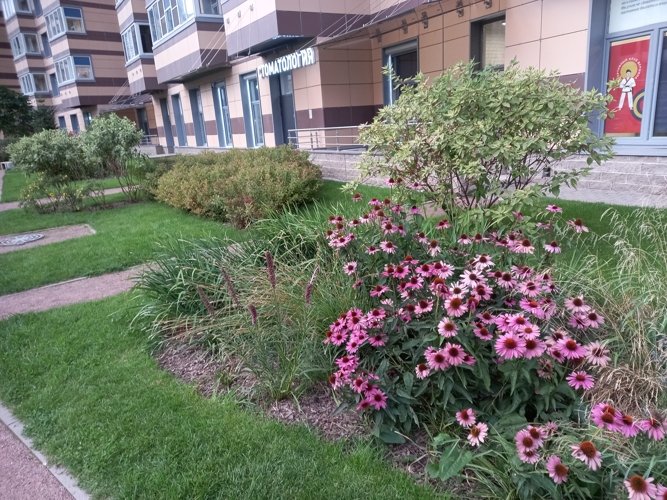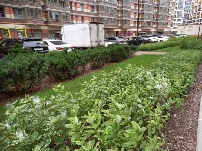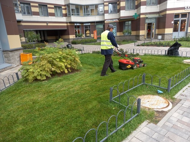 Часто можно созерцать уход по озеленению: то стригут газоны, то поливают в жаркую погоду, то обрезают кустарники. И озеленение здесь на уровне. Это и кустарники, и цветы, и деревья, как привычные нам клёны, лиственницы, ели, так и необычные пихты и румелийские сосны.