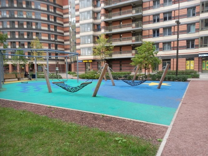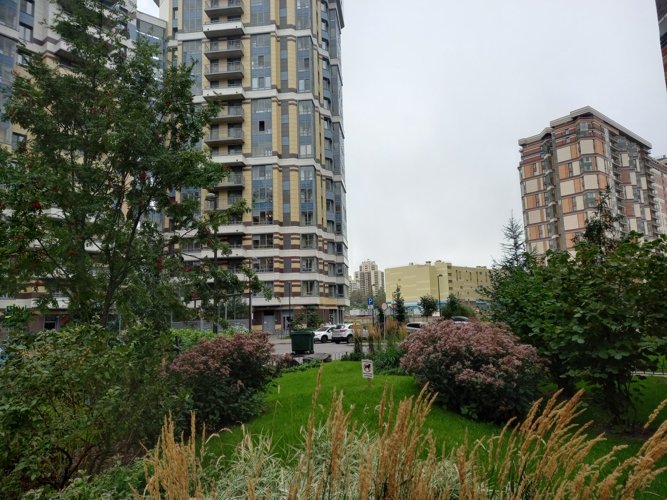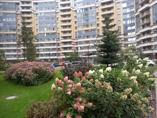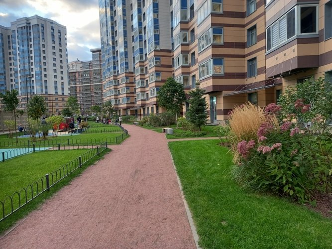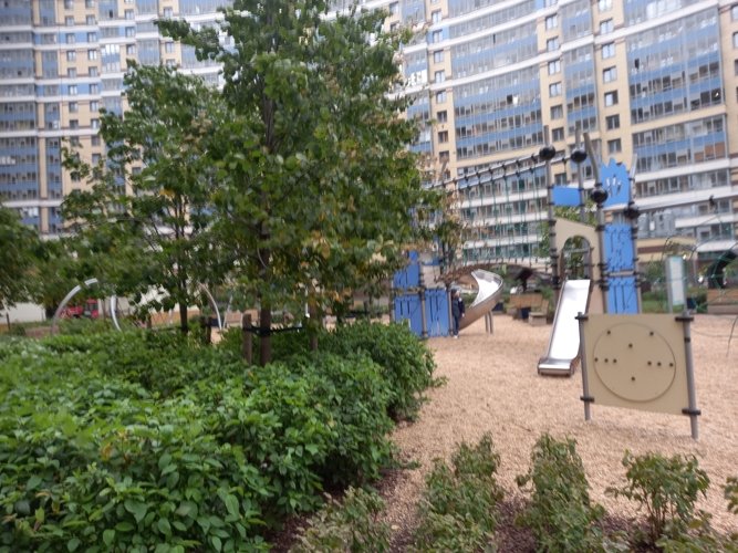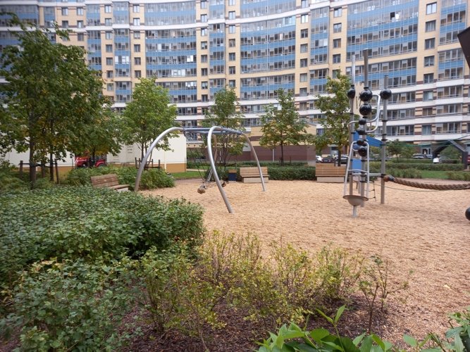 Рядом с ЖК "Приморский квартал" : 3 ТЦ , 2 Парка. При этом и от Петропавлоской крепости - всего 25 минут на автобусе. "Приморский квартал" - это и деревья (клёны, лиственницы, ели, сосны. пихты, фруктовые деревья), и кустарники, и цветы, и украшение камнями. Также на достойном уровне детские площадки, как маленькие, так и крупные.