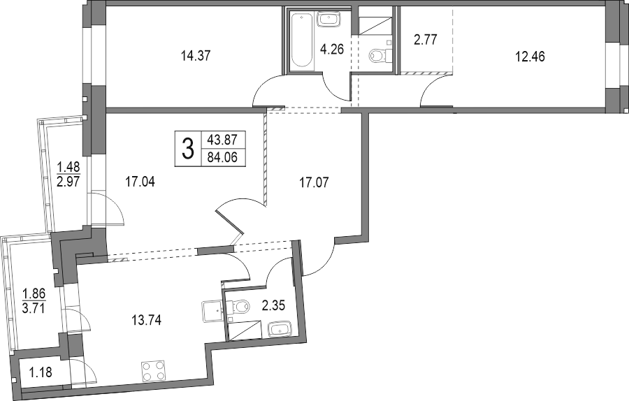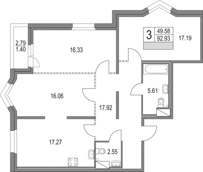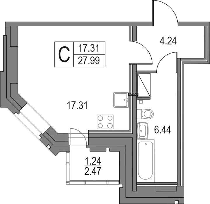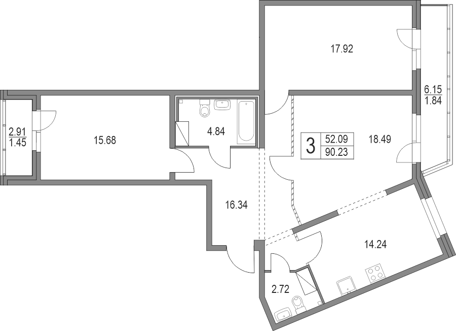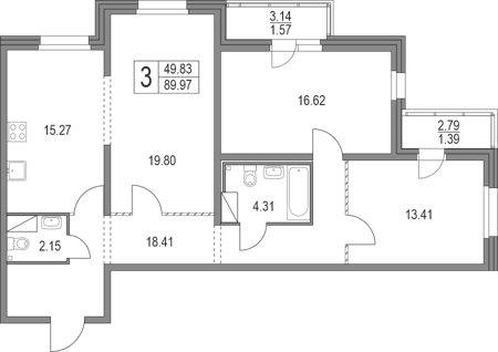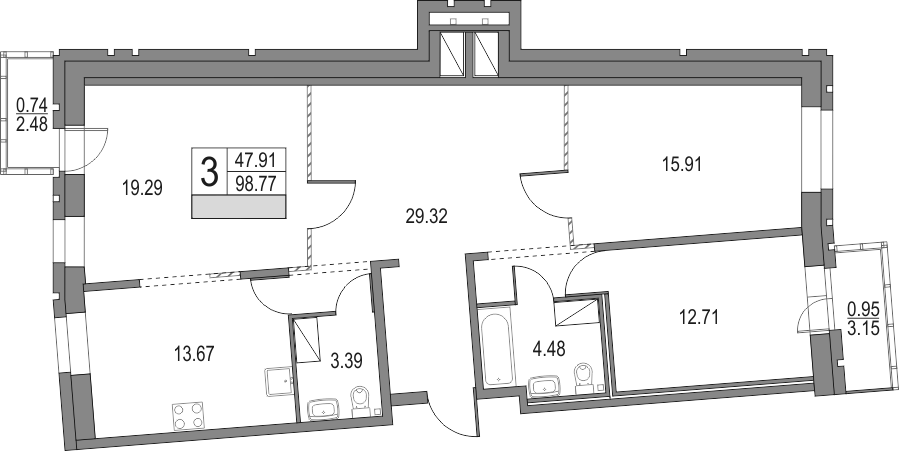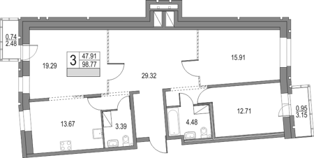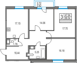 В “Приморском квартале” представлены студии, 2-, 3-, 4-комнатные квартиры площадью от 22,7 до 122,56 кв. м. В них есть такой плюс, как наличие готового стока из пластиковых труб на балконах для жидкостей из кондиционеров. Виды различны: на дворы, на церковь, на зелёные пространства Удельного парка, а с корпуса на Коломяжском проспекте можно увидеть колесо обозрения на Крестовском острове и даже небольшой кусочек залива.