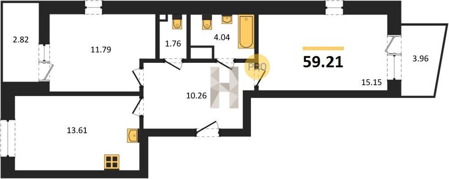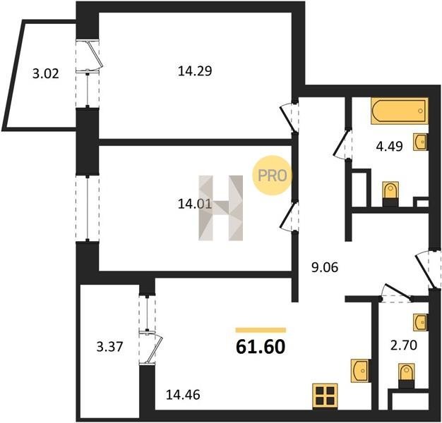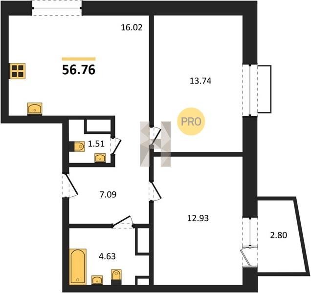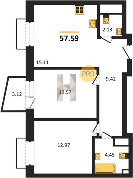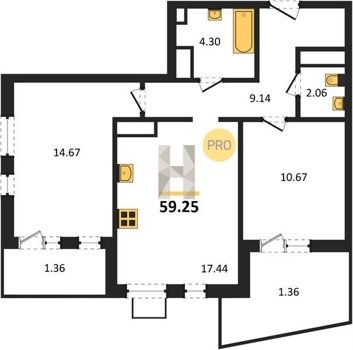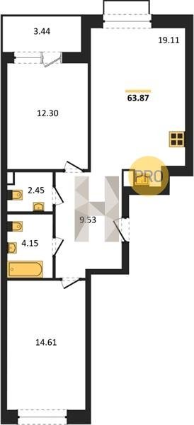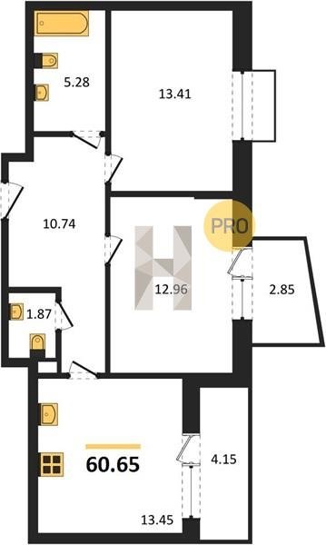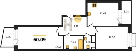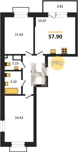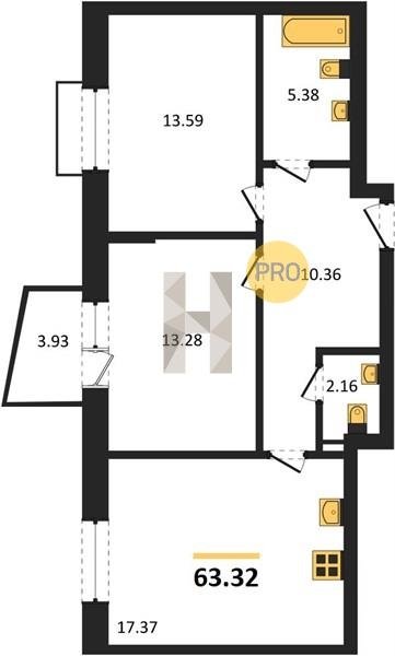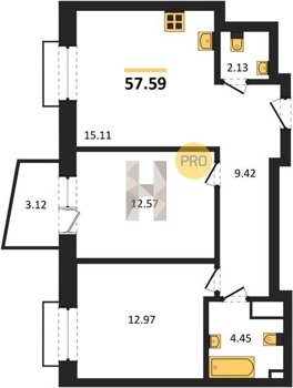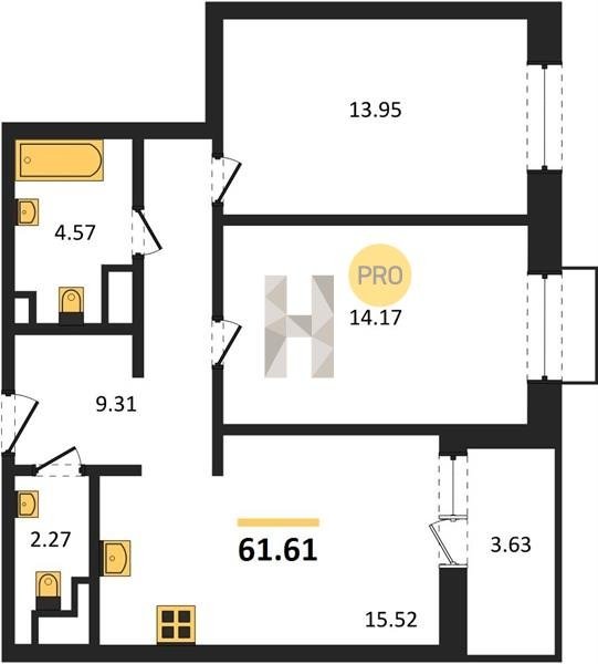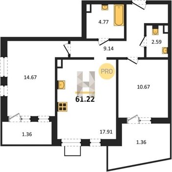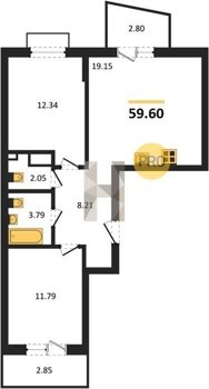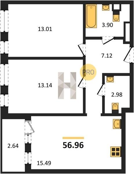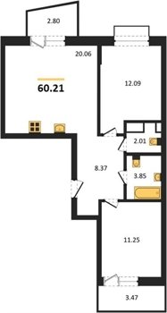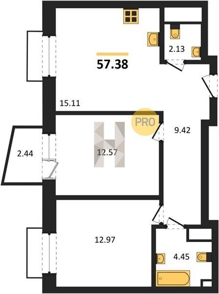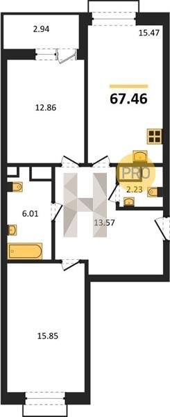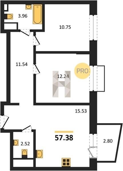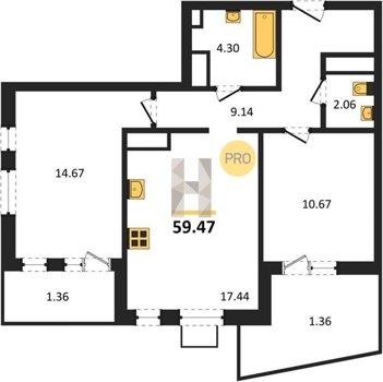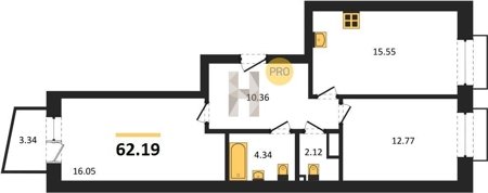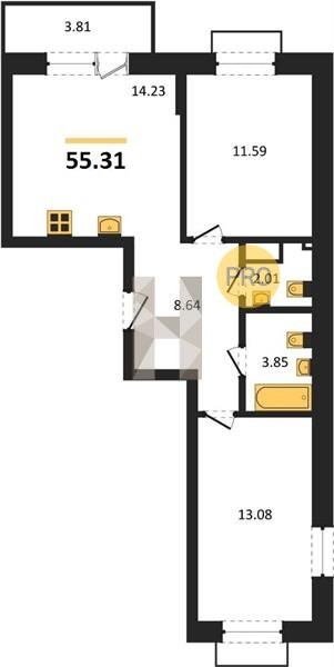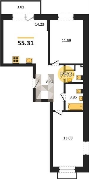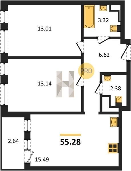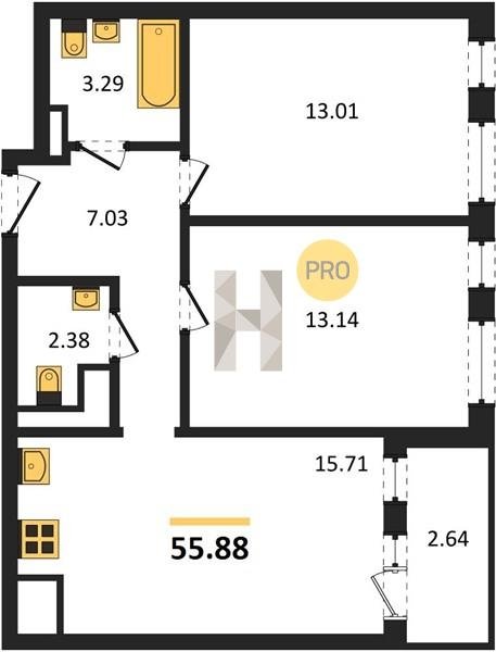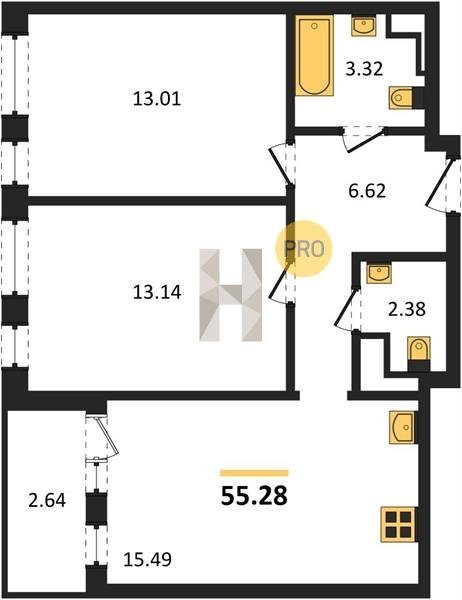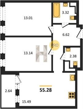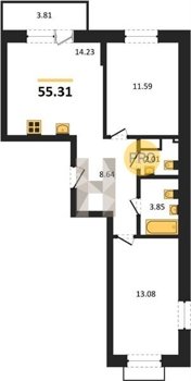 Площадь от 55.15 м2
