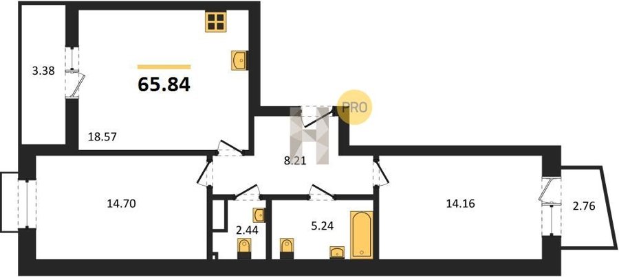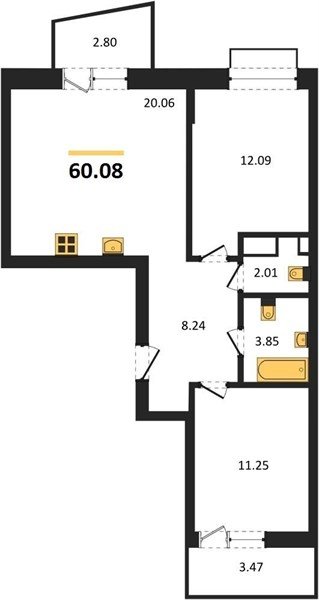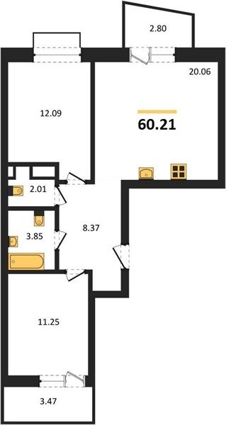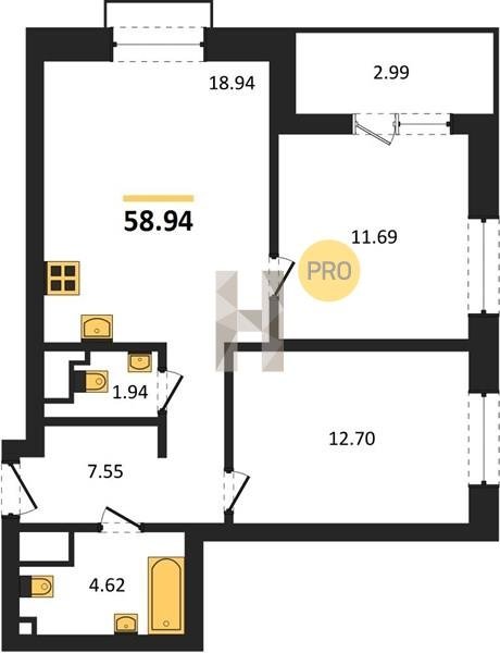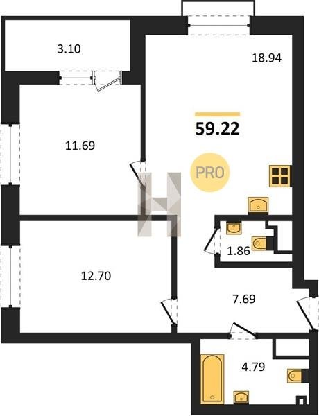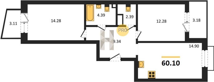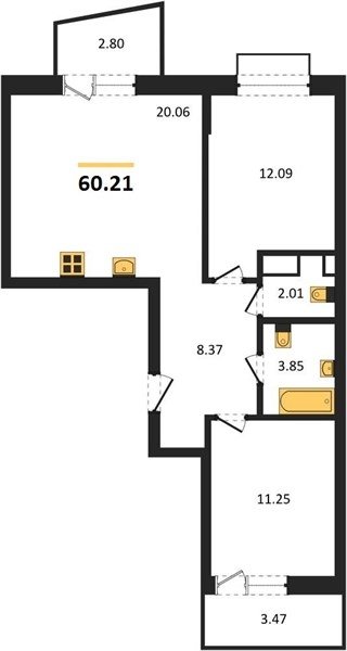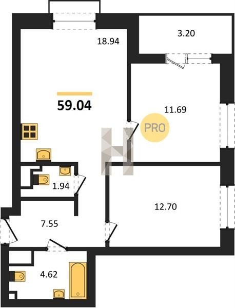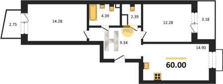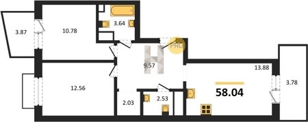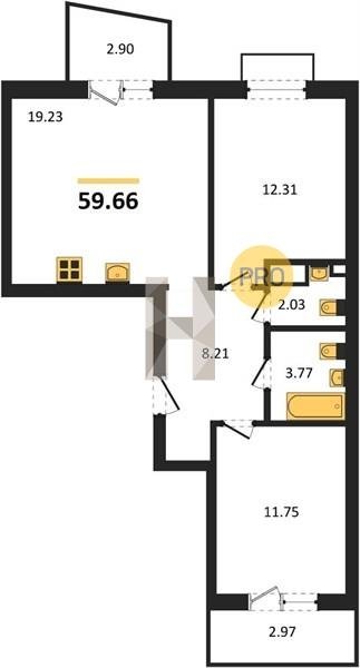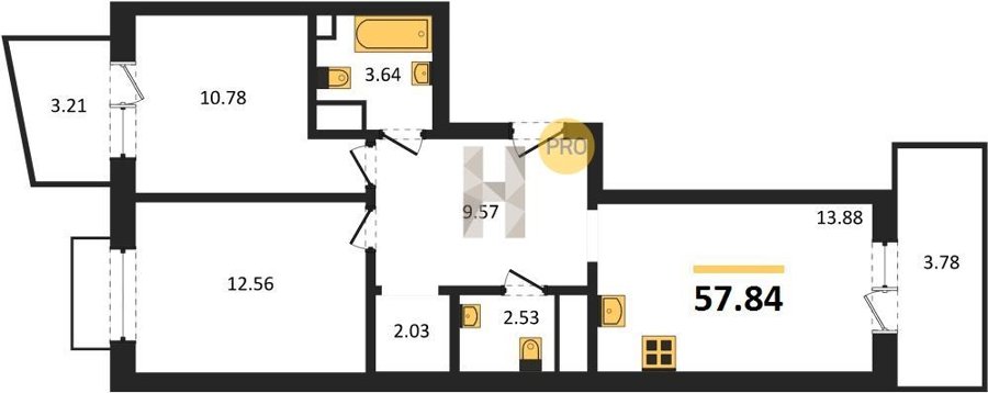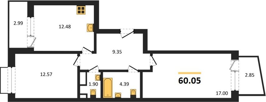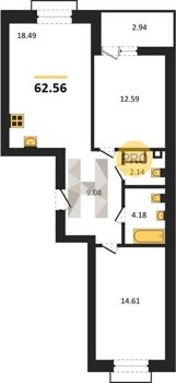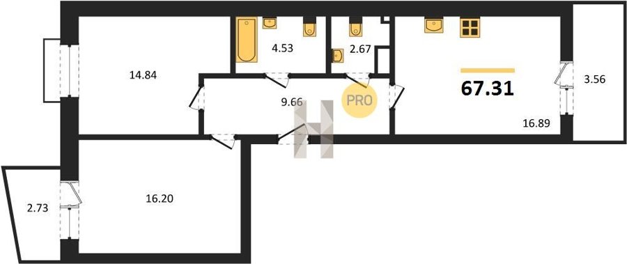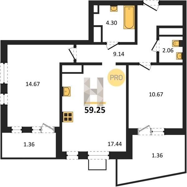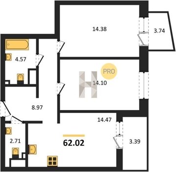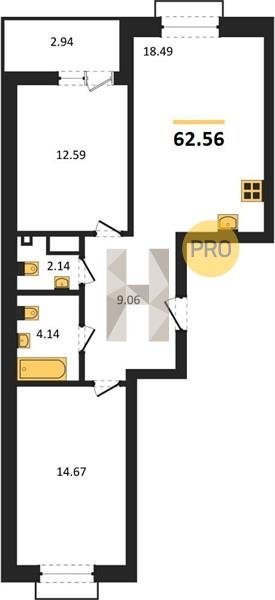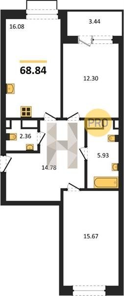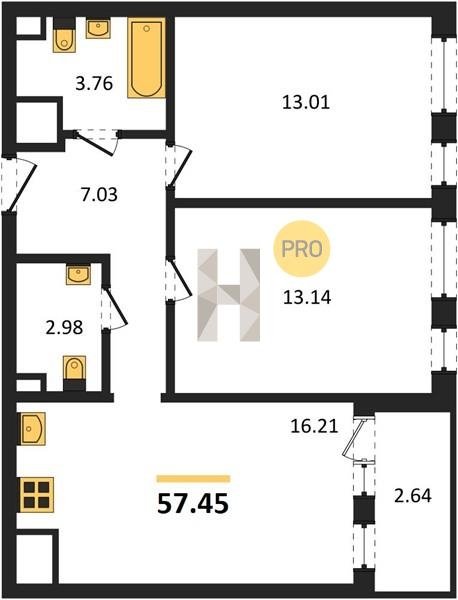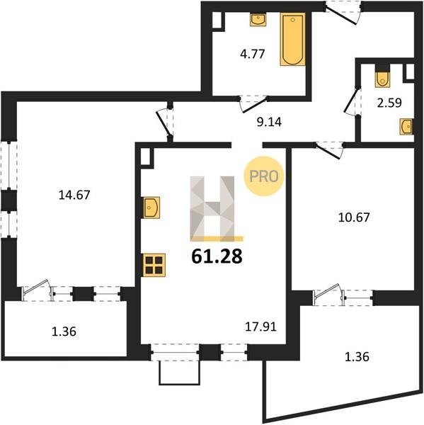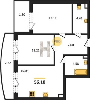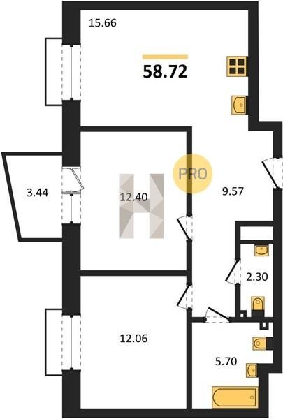 Площадь от 55.15 м2