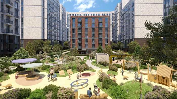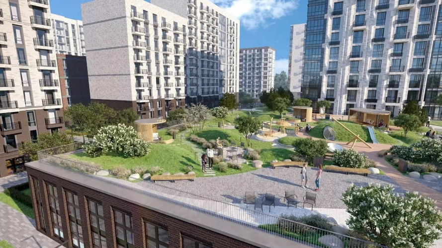 Вся территория квартала будет связана единой концепцией благоустройства, разработанной ландшафтным бюро L.BURO. В основе — идея создания увлекательного ландшафтного пространства для насыщенной жизни, включающего в себя пейзажные зоны, современные архитектурные композиции, открытые террасы на стилобатах с зонами отдыха и парклетами, спортивными площадками. Это пространство для людей всех возрастов и различных увлечений.