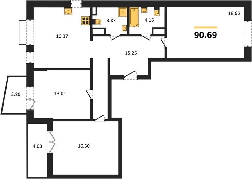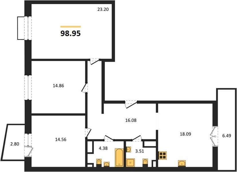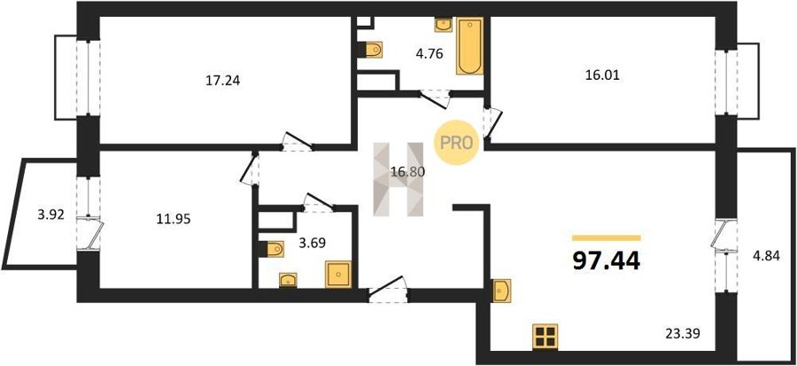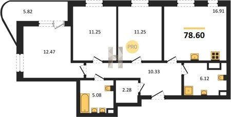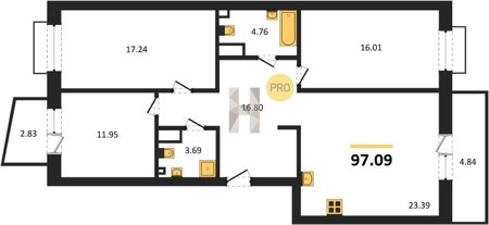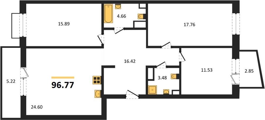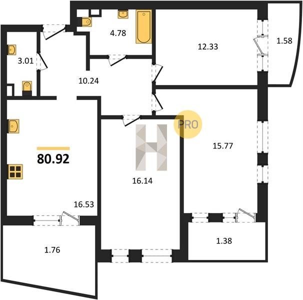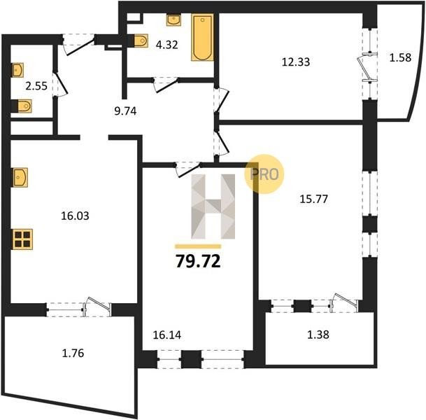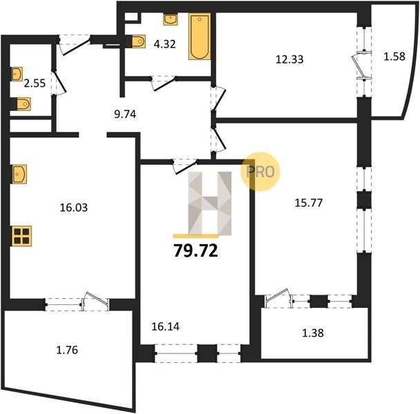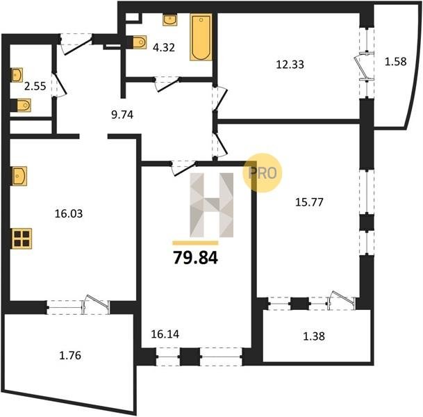 Площадь от 76.75 м2