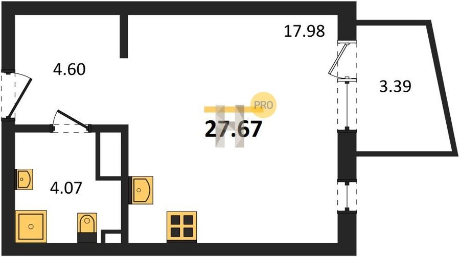 Площадь от 23.2 м2