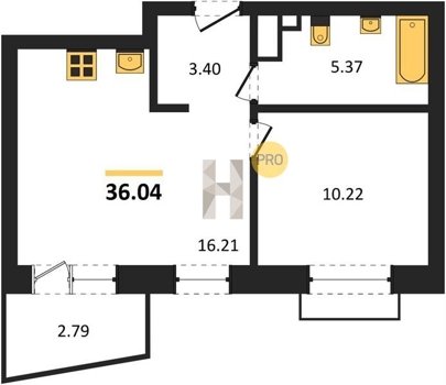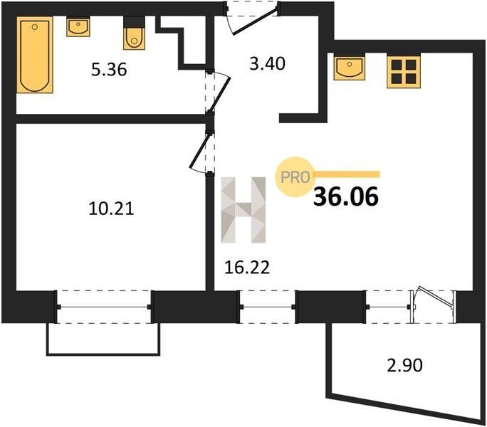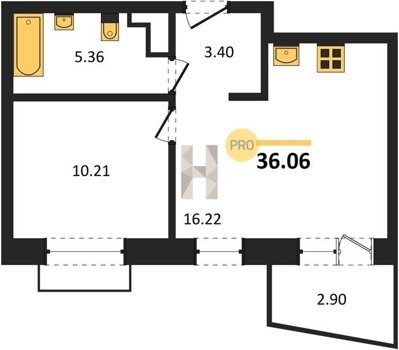 Площадь от 36.06 м2